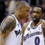 Arenas and Javaris Crittenton in December 2009, when the two teammates