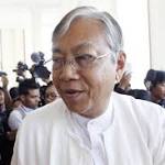 Kyaw, left, newly elected president of Myanmar, walks with National